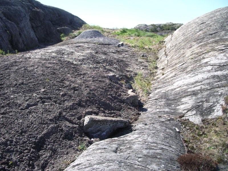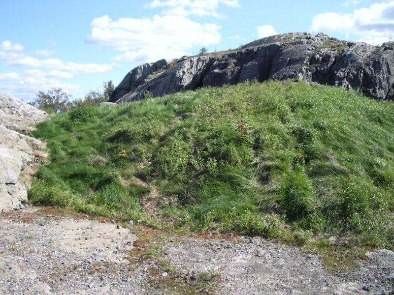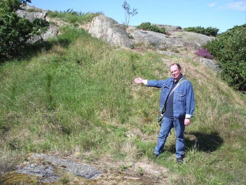Bild 010 - Backen upp mot Batteri BO Så, på Batteri BO lyckades vi lokalisera två av de tre pjäsbrunnarna. Osäkert om det under dessa