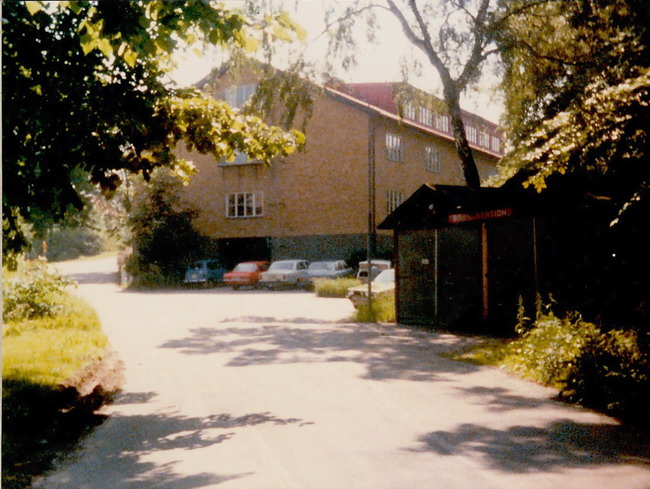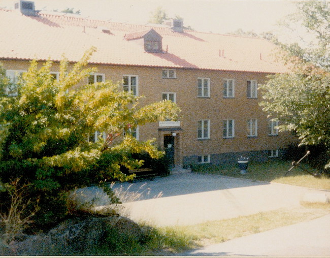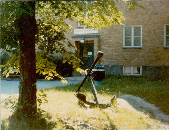 [Bild 2] Samma kasern ur en annan vinkel, här ser man ankaret och minan men däremot inte den fina träskylt med metallbokstäver som satt till vänster om dörren. Och vad stod det på den då? Ja MULDIV förstås, som komplement och förtydligande av den stora trista skylten ovanför dörren där det stod Minutläggningsdivisionen... :)