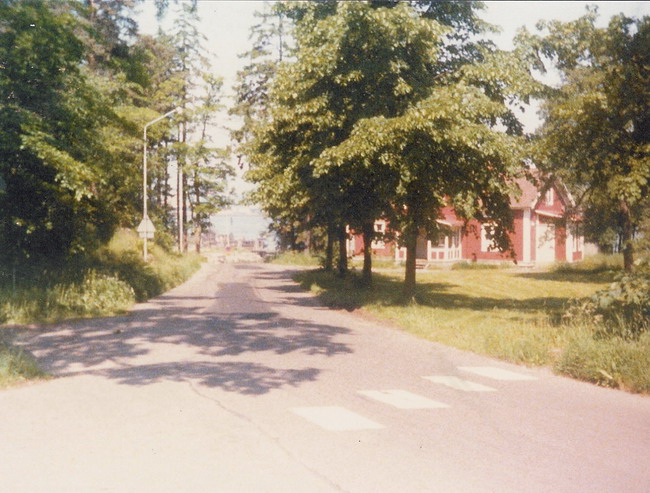 [Bild 4] Samma backe som i föregående bild, men nu är bilden tagen från strax utanför kasernen och ned mot hamnen istället. Det röda huset som nu ligger till höger kommer jag inte ihåg vad det var, men jag har för mig att det var HV (Hemvärnet) och UKA (Unga KA) eller något sådant som använde det.