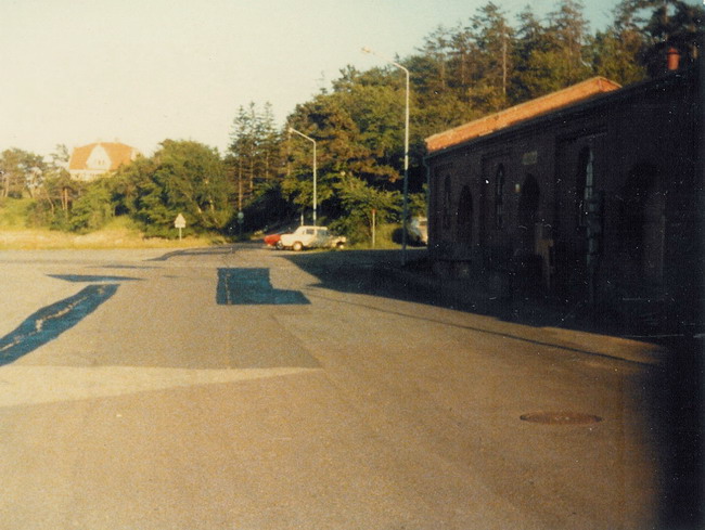 [Bild 5] Bild i motsatt riktning igen, det röda huset i förra bilden ligger ungefär precis bakom träden längst bort på vänster sida. Tegelhuset på höger sida var bränsle/oljedepå för båtarna. Till höger bakom detta låg maskinhallen.