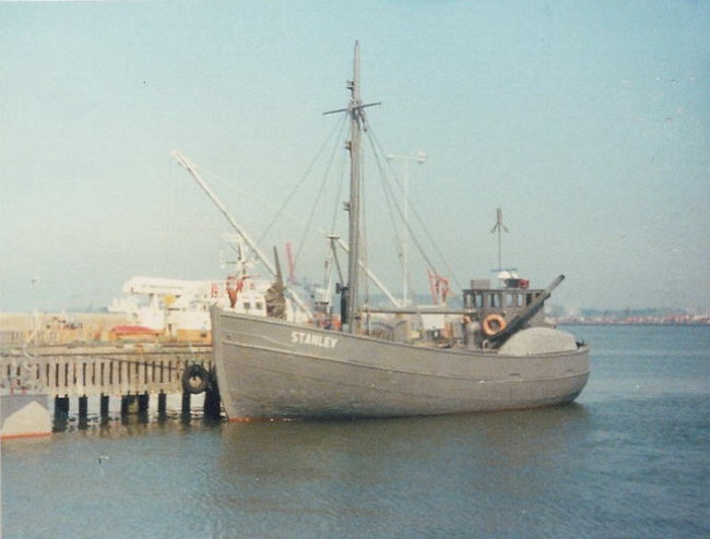 [Bild 7] Stanley, en gammal fin fiskebåt som tillhörde Sjötransporten. Stanley användes mycket för transport av materiel och förplägnad ut till batterierna och övriga förband ute på öarna.