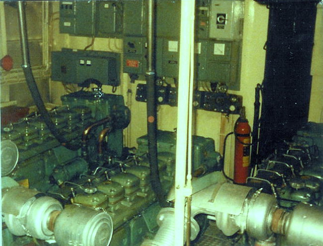 [Bild 13] Del av maskinrummet på 64:an, här tillbringade jag en del tid inklusive ett par smällvarma dagar vid Grebbestad, då vi giiiivetvis var heeeelt tvungna att packa om alla lager till propelleraxeln. Samtidigt som däcksfolk, minörer och befäl var ute i solen och njöt, så fick vi hålla till godo med den ungefär 60-gradiga värmen i maskinrummet... men frös gjorde vi inte iallafall... :)